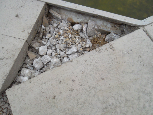 Removal of Wood Deck. Patio stairs leading to concrete patio area.